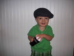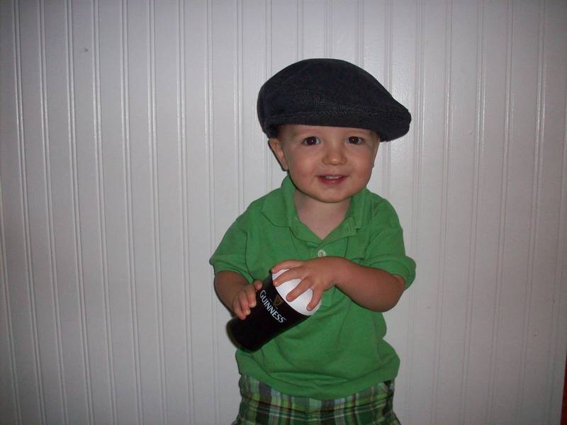On a happier note, Grandma got me a great cap and a fake Guiness pint from Ireland. I have been practicing as you can see below. Cheers Mate!