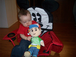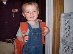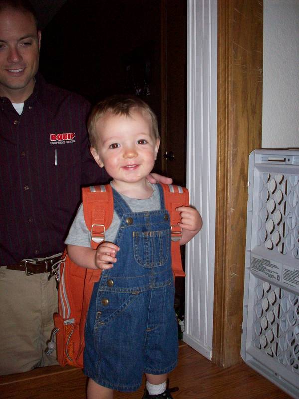 Mom thought it was necessary to take a picture of me on my first day of school. Of course, my backpack is as big as I am and I can't carry it, but she says I look too cute with it. School is great fun, I learn lots there....mostly how to get dirty and be more ornery. For instance, one day Dad caught me listening to his music. I can't believe anyone still listens to Vanilla Ice. Dad is such a dork.