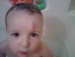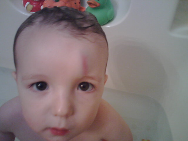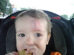 OUCH! Today I decided to test which was harder; a cubby at school or my head. Well, I think it was a draw, but I don't remember it too well. One thing is for sure, I got a lot of attention from the ladies at school afterwards...