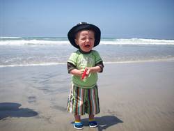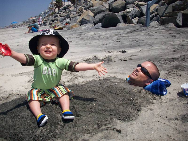 In June, we went to San Diego with Grandma goo-goo. I did really well on the flights, even with a 90 minute tarmac taxi in Chicago. Dad says he always hates that airport...I'm starting to understand. We went to a big lookout point near the naval base and got to see really far. As you can see, I wasn't a real big fan of the ocean up close. I don't know why they thought I would like being in that cold water. I take warm baths...not salty cold ones. I had the most fun when Dad let us bury him in the sand. Some times he's a real stick in the mud, but not this time...he was just a Dad in the mud!