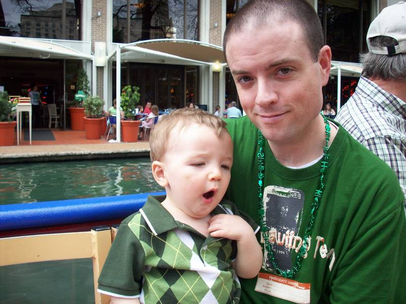 For St. Patrick's day this year we went to San Antonio for a few days. Mom and Dad got a real nice room right on the riverwalk so they could still sit and enjoy the atmosphere...even if I was sleeping. Goobers.
